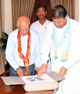On Wednesday I went to a Baithak at a Louden Street residence and then went to the Raj Bhavan and presented to the Governor of West Bengal, Shri Keshari Nath Tripathi, a unique copy of the Bhagvad Gita weighing 15 kilos, at an event organised by the Jain Sanskriti Sansad.