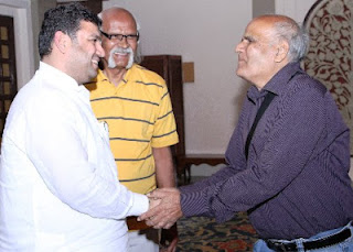 October 2, 2012: Today evening, the fourth event in the Desert Souls series took place at Hotel ITC Rajputana. Desert Souls is getting very popular. The Rajasthan Forum member and eminent painter Vidyasagar Upadhyaya was in conversation with guest Suresh Sharma who is an eminent artist. Suresh Sharma’s work epitomises a generation of outstanding Rajasthani artists born in the 30s. Sharma, who emerged in the art scene in the 60s, is known for his style of Abstract Expressionism. Emotional intensity, spontaneity and the use of sub-consciousimagery are the hallmark of his work.