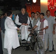 I had kept Gram Bangla as the reception theme and guests were requested to arrive on rickhshaws from the road to the main gate of my house. Jakhar sahab was thrilled seeing this arrangement and while he was boarding the rickhshaw I wanted to give him my hand in support which he politely refused and climbed on to the rickshaw on his own (file picture) saying let me check how fit my body is.