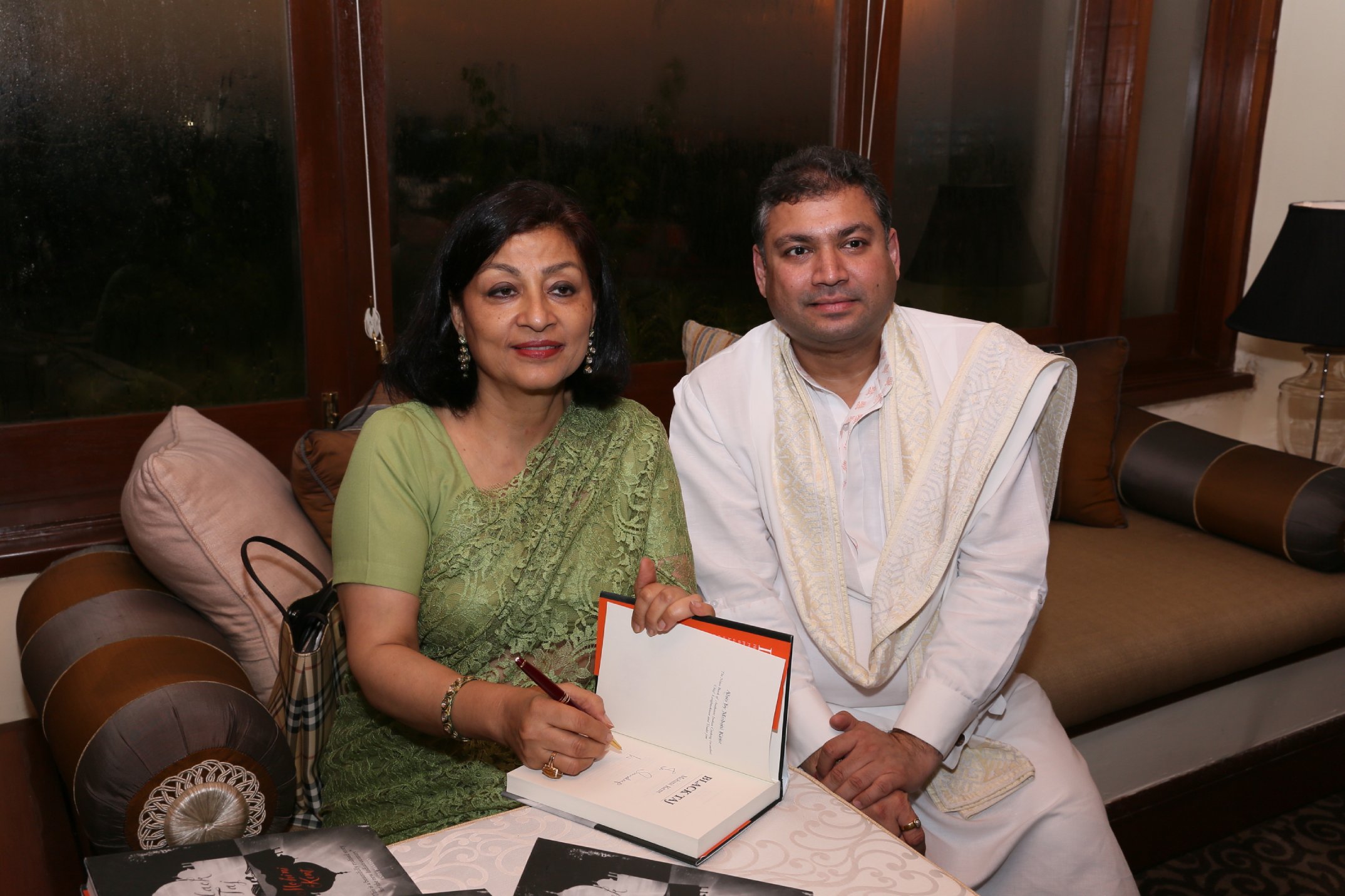 Sundeep Bhutoria with guest author Lady Mohini Kent Noon signing off a copy of her book at An Author’s Afternoon session in Kolkata