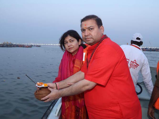 Sundeep Bhutoria with Manjari Bhutoria at Triveni Sangam in Maha Kumbh