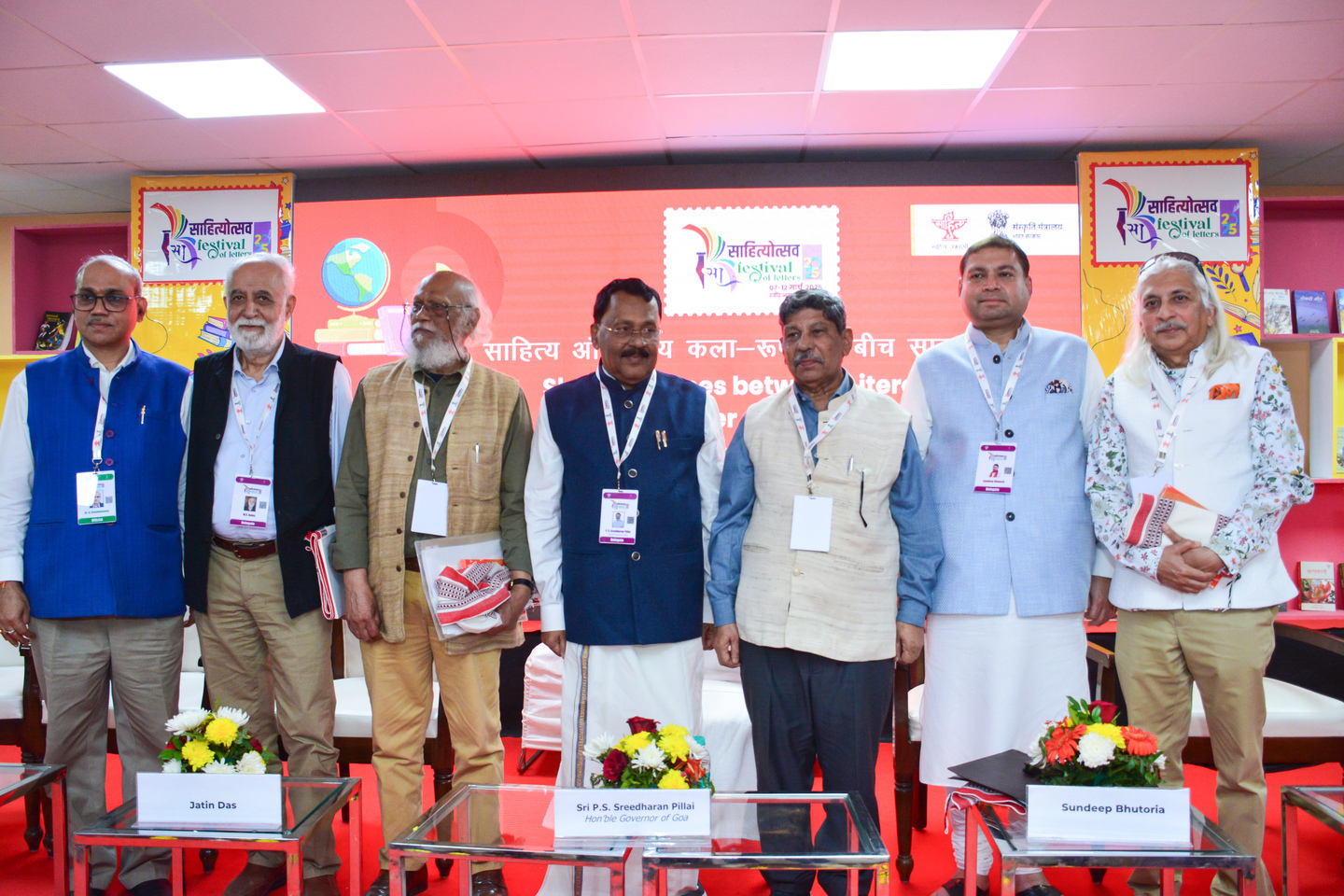 Sundeep Bhutoria with (L-R); Dr K Sreenivasarao, MK Raina, Jatin Das, Sri P. S. Sreedharan Pillai, Hon’ble Governor of Goa, Sundeep Bhutoria, Dr Madhav Kaushik and Sanjoy K. Roy