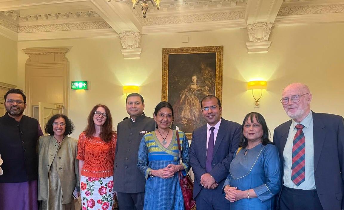 Sundeep Bhutoria with (L-R) Yadavan Chandran, Garrabost D Jayalakshmi, Avril Gray, Mallika Sarabhai, Siddharth Malik, Consul General of India in Edinburgh, Bashabi Fraser and Neil Fraser