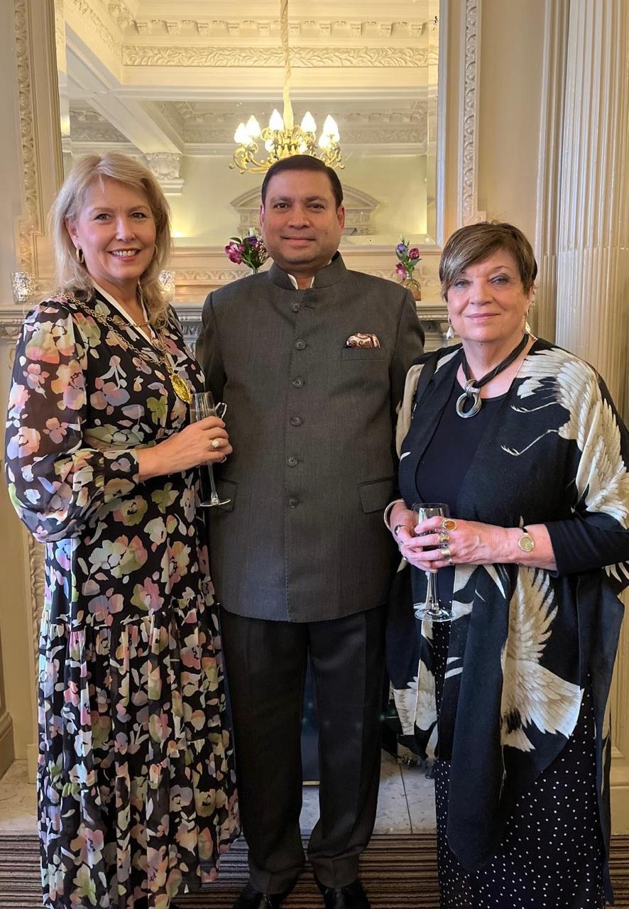 Sundeep Bhutoria with Lezley Marion Cameron, Depute Lord Provost of Edinburgh and Lady Joyce Caplan at the Balmoral in Edinburgh