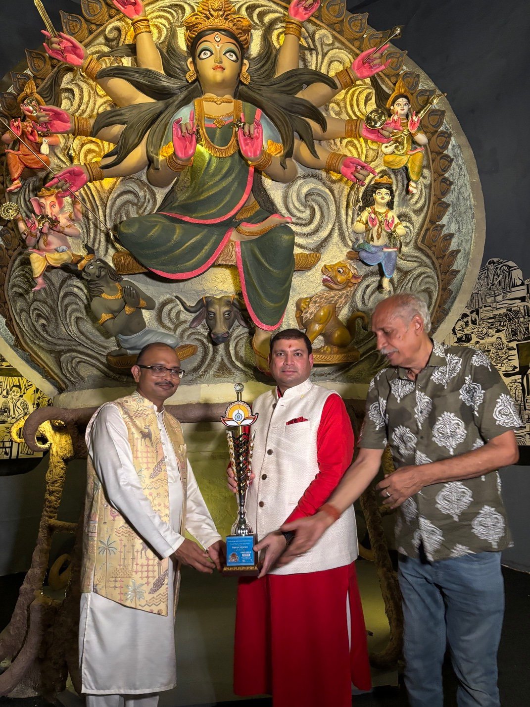 Manicktala Chaltabagan Lohapatty Durga Puja Committee has received the Biswa Bangla Sharad Samman Award 2025 from the Government of West Bengal. Chairman Sundeep Bhutoria, President Ashok Jaiswal and Rajesh Bihani proudly accepted this honour.