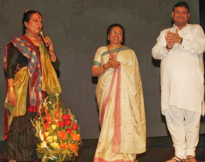 This event was organized by Prabha Khaitan Foundation and the venue provided by Sanskriti Sagar and the hospitality by Club Verde Vista. This was the first of a 10-city tour in India that took off from Kolkata. At the end of the event, danseuse Tanusree Shankar felicitated Sonal ji with a flower bouquet. This time the heavy traffic snarls had some impact on the turnout. I too got stuck in a jam and reached half an hour late. It was a very nice programme that was much appreciated by the audience.