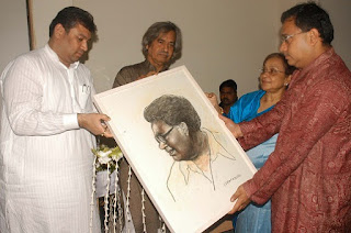 Jogen Choudhury presented Mrs Swati Ganguly and Souvik a specially prepared sketch of Sunil da as his mark of respect and admiration.